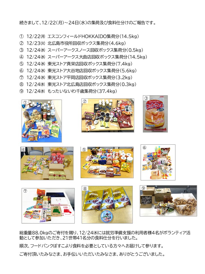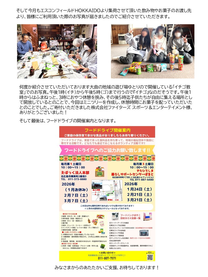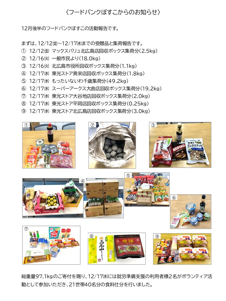 〈フードバンクぼすこからのお知らせ〉